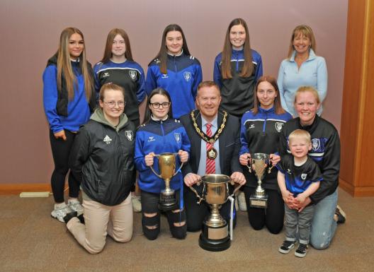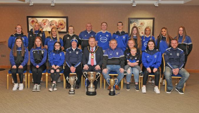 The Lord Mayor, Cllr Paul Greenfield was delighted to welcome for a Civic Reception the ladies teams of Craigavon City FC who won the Division 4 League and League Cup and the U17 also winning their league.
