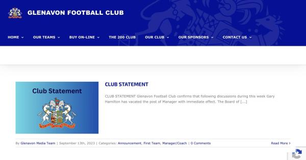 In a statement issued this evening the club said, “Glenavon Football Club confirms that following discussions during this week Gary Hamilton has vacated the post of Manager with immediate effect.
